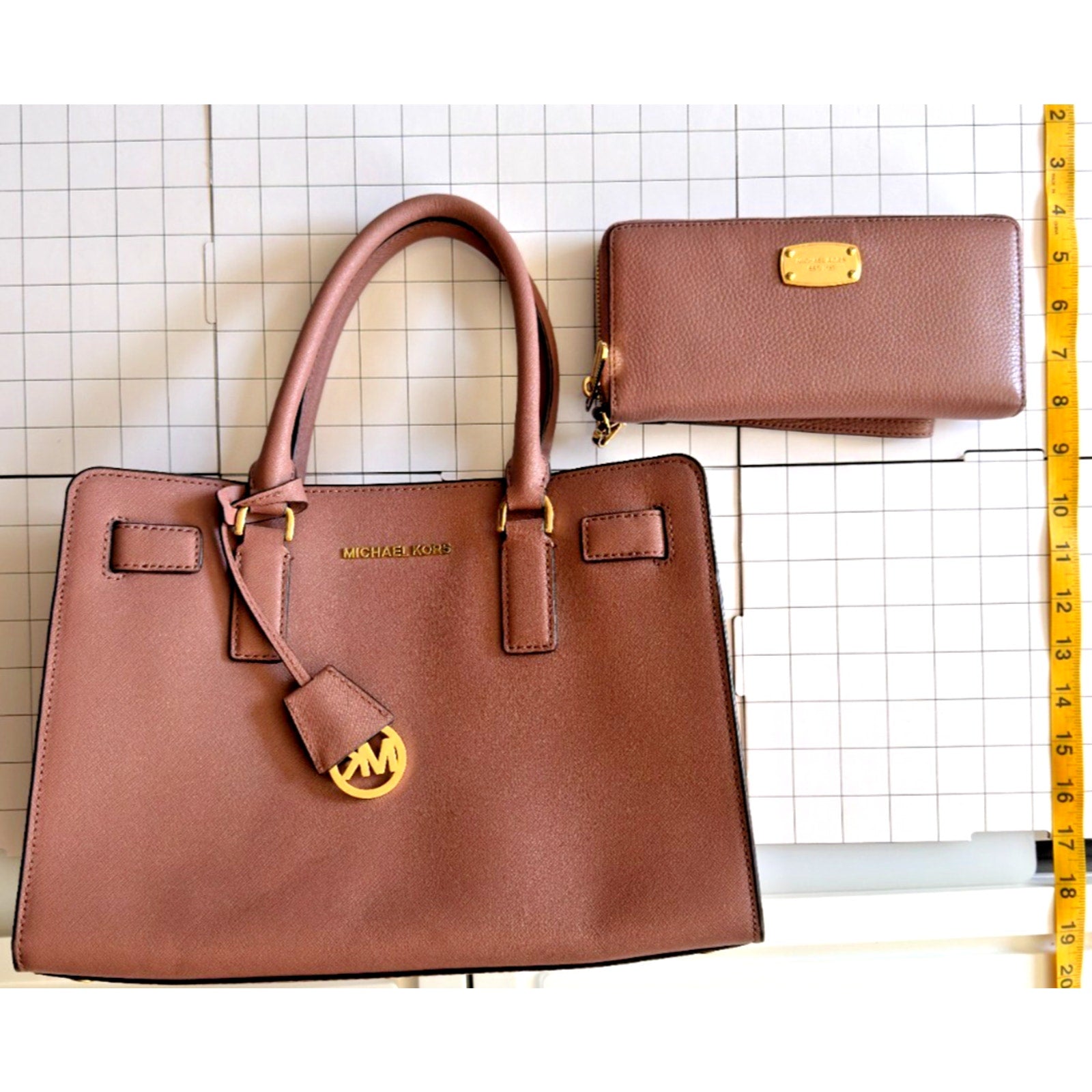 Michael Kors Dillon Satchel Shoulder Bag in Dark Dune Taupe Leather w Wallet