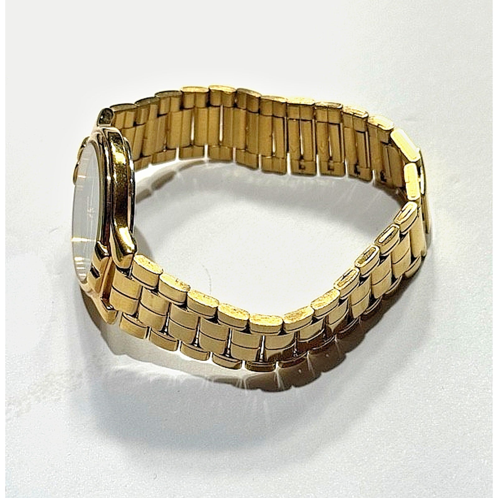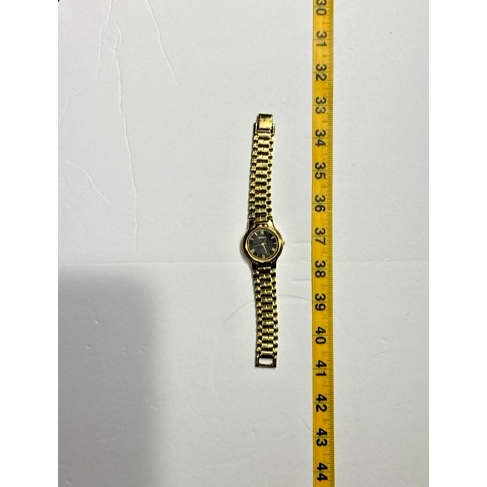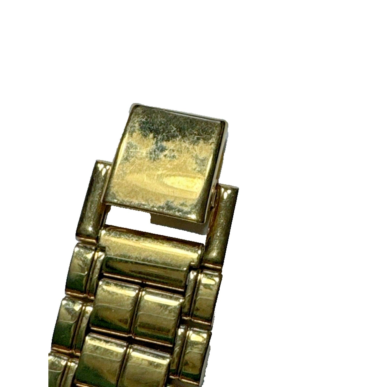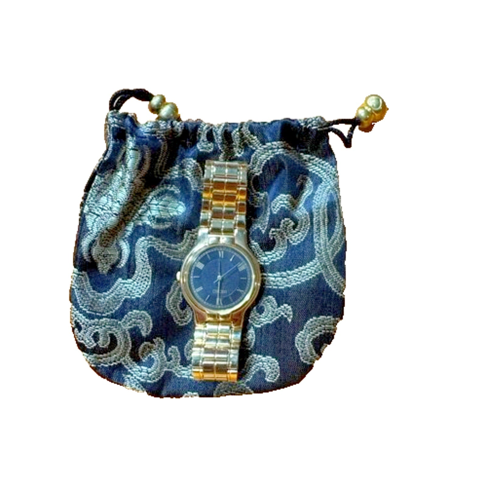 Band and face are bright and clear. Clasp fastens smoothly and firmly. Good working condition with new battery. Some signs of faint/typical wear on the band, clasp, and face. Comes with dust bag (not original)