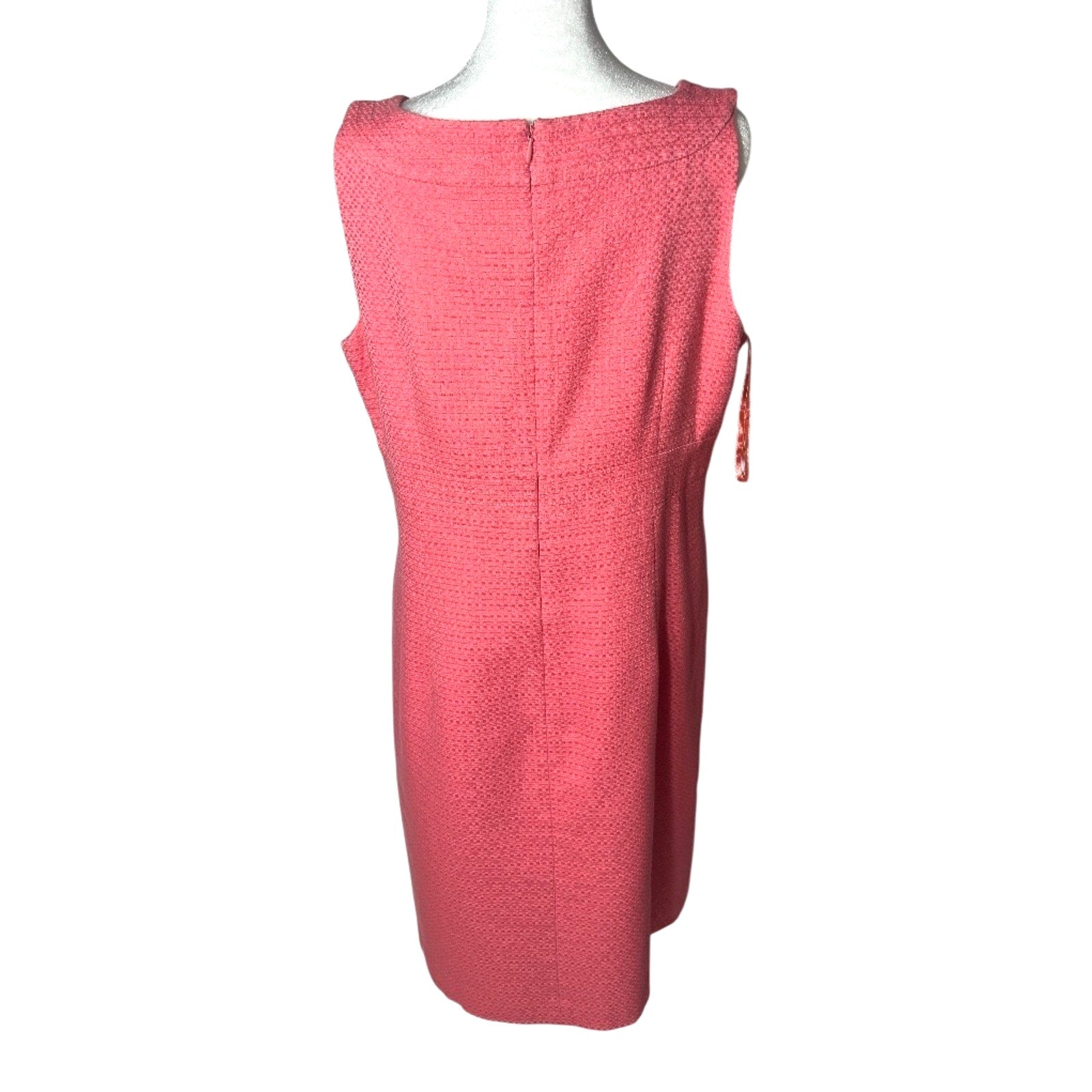 The LOFT Pink Sheath Dress in Size 14 exudes a retro look with its fitted jacquard-style blend fabric. The sleeveless design and knee-length silhouette make it suitable for casual occasions, while the round neck and zip closure add a touch of elegance. Made from a comfortable polyester blend, this dress from the LOFT brand is perfect for women looking for a stylish and chic addition to their wardrobe.