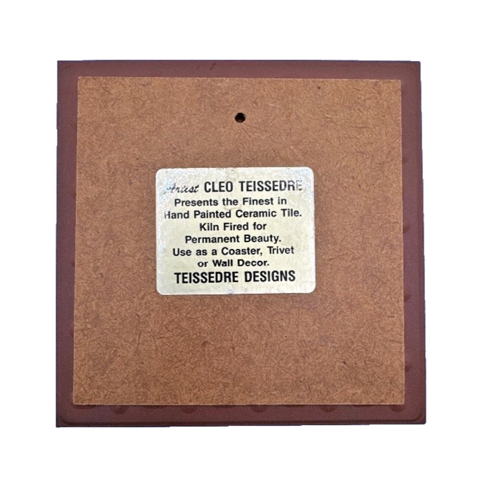 The VTG 1984 Cleo Teissedre Hand Painted Ceramic Art Tile features a square 6" x 6" design, perfect for adding a touch of vintage charm to any wall. Handcrafted in 1984 with a multicolor palette, this ceramic tile showcases the unique storytelling doll theme inspired by the art pottery production style of the late 20th century. Ideal for the kitchen or any room in need of a artistic accent, this handmade tile is a true reflection of the artistry and craftsmanship of the era.